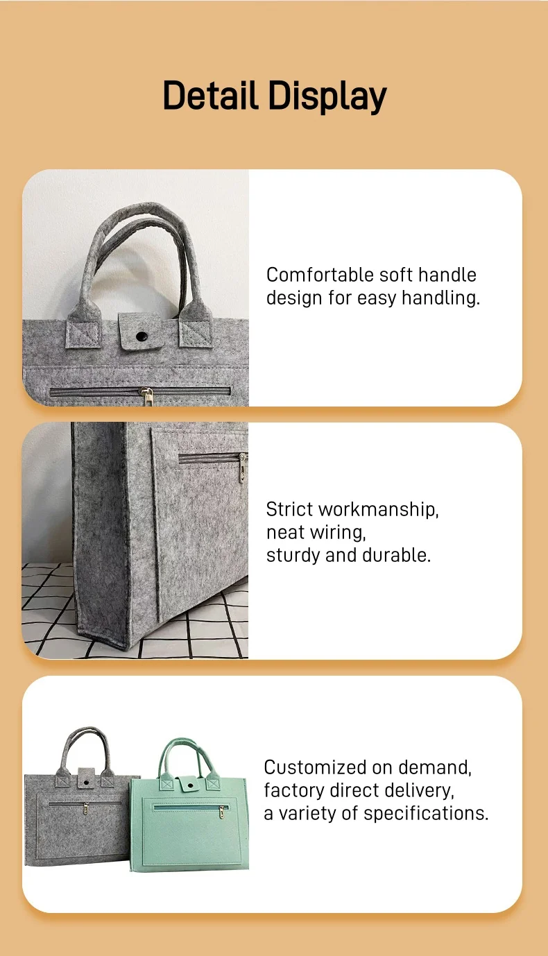 Article | Sac fourre-tout en feutre coloré, mallette d'affaires, sac à main pour ordinateur avec logo personnalisé, sac pour ordinateur portable de grande capacité |