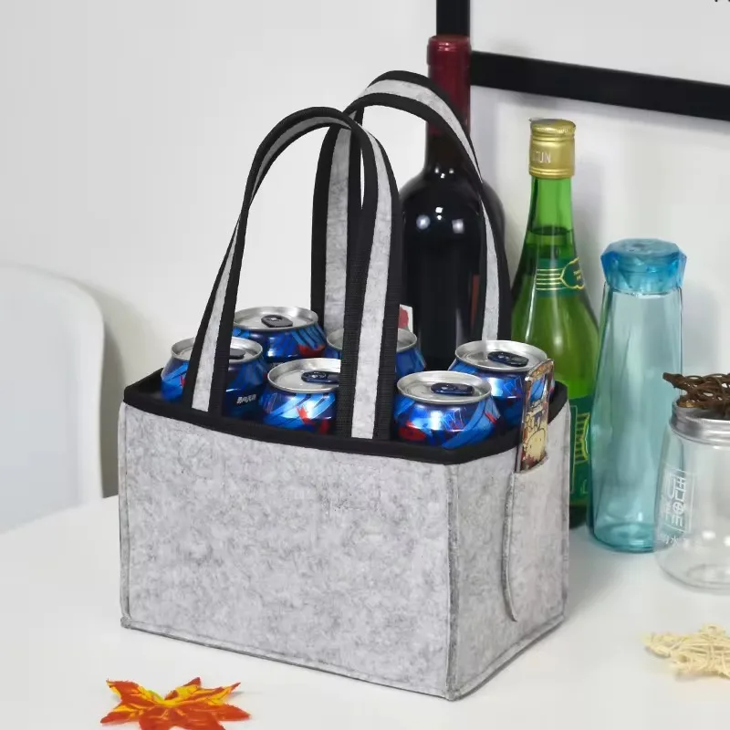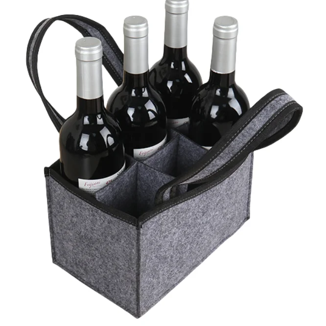 Meilleur vendeur prix de gros sac de transport de vin non tissé logo personnalisé grande capacité portable mode vin bière sacs en feutre pour bouteilles | |