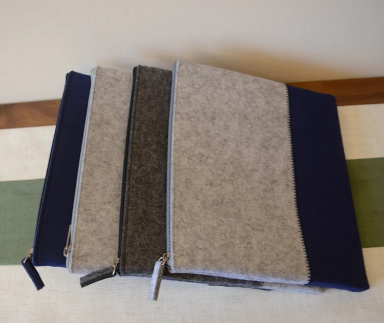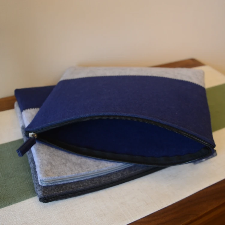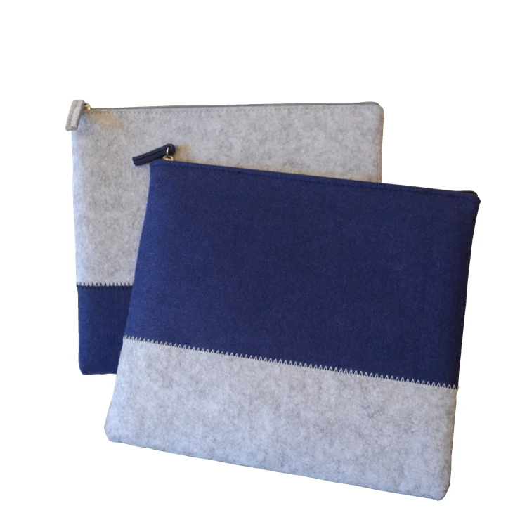 Progift Logo personnalisé pas cher petite promotion mode nouveau bleu gris bicolore feutre cosmétique porte-monnaie sac organisateur et étuis avec fermeture à glissière