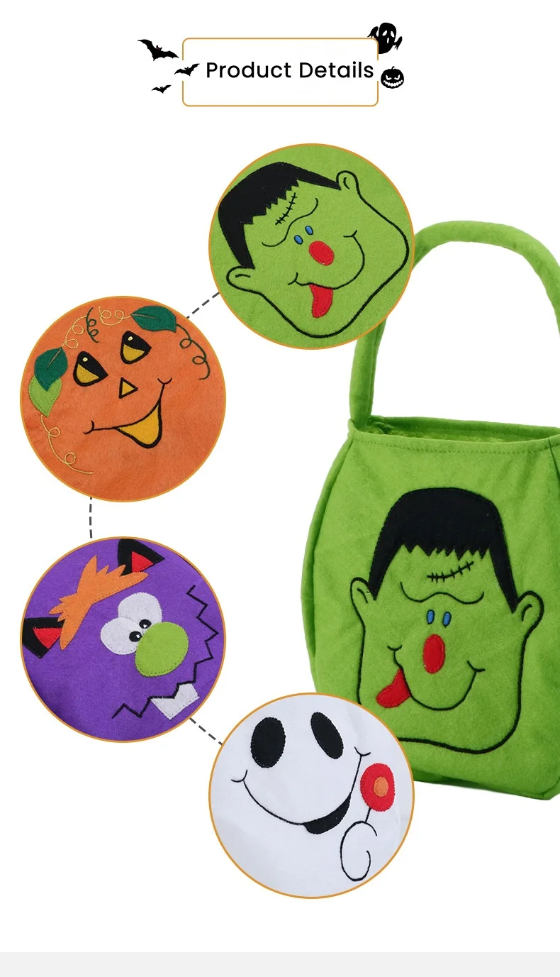 Sac à bonbons en feutre pour enfants, cadeau d'Halloween, fournitures de fête amusantes pour le festival des fantômes