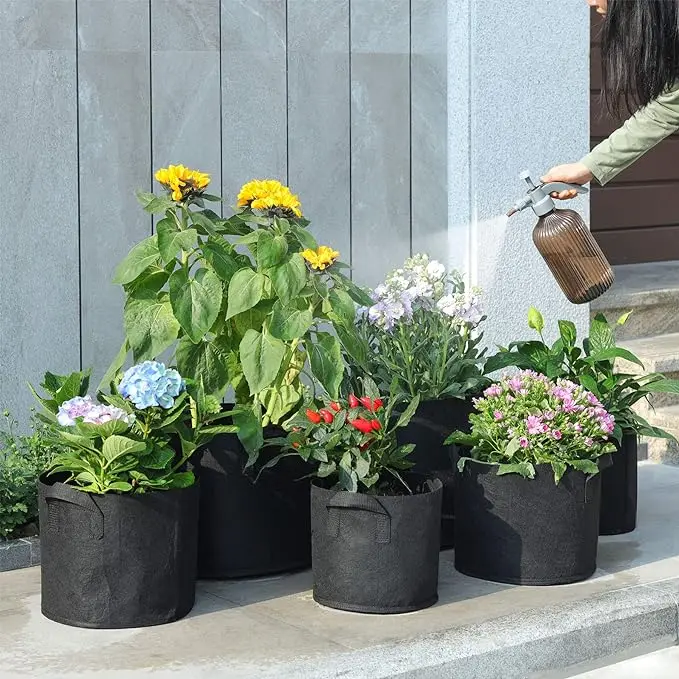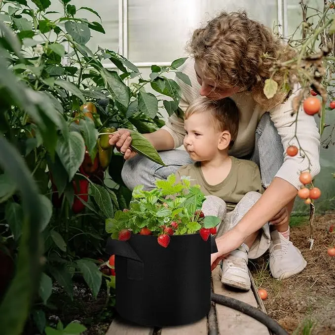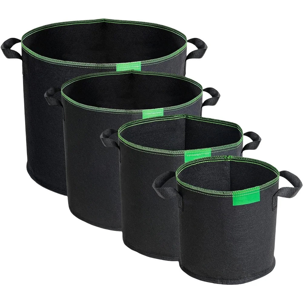 Article | Sac de culture de plantes en tissu non tissé rond durable de taille personnalisée en feutre polyester noir vert pour parterre de légumes pot de fleurs balcon terrasse | ||||||