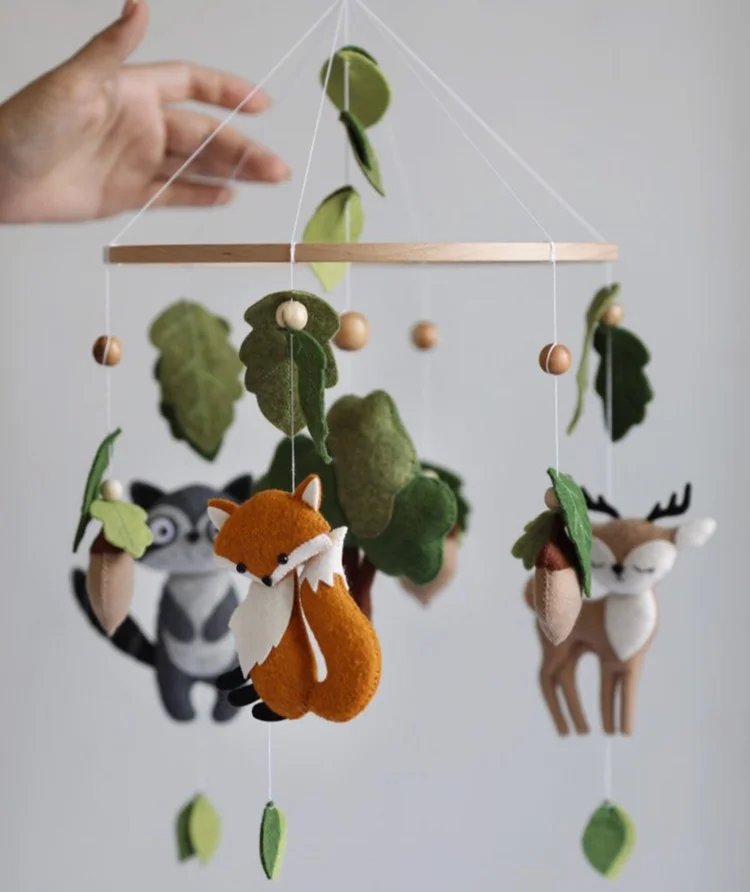 Jouet Montessori fait à la main pour bébé en peluche de forêt, cloche de lit suspendue en feutre, animal musical, mobile pour berceau de bébé pour filles