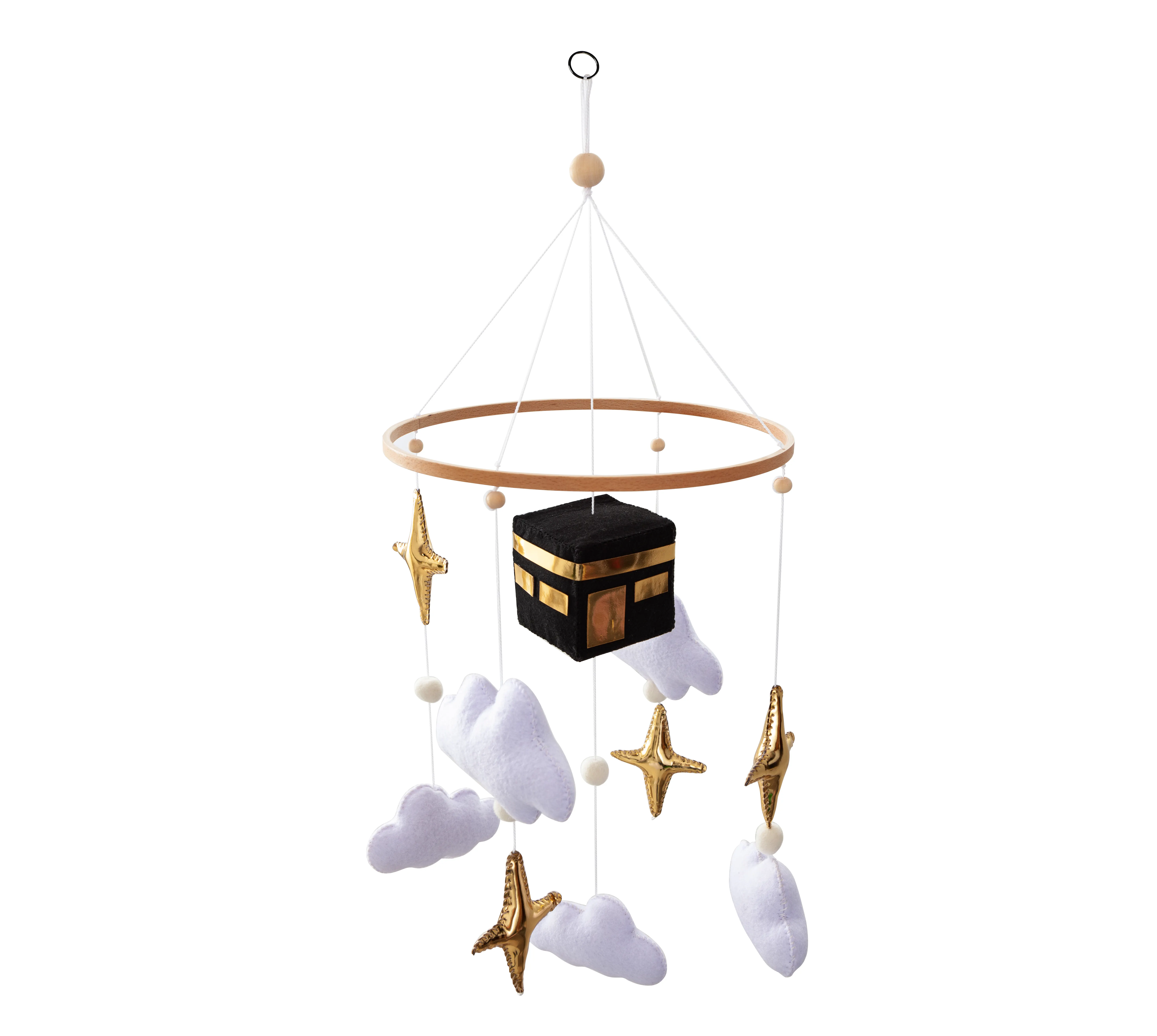 Vente en gros, assurance qualité, fini, cloche de lit bohème, jouets suspendus pour lit bébé, musical, printemps, islamique, kaaba, mobiles en feutre pour bébé